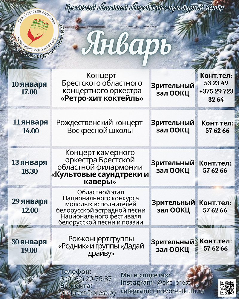 4 декабря сотрудники Брестского областного общественно-культурного центра приняли участие в организации и проведении торжественного мероприятия, посвященного 86 годовщине Брестской области. В рамках мероприятия прошла презентация выставки Брестской областной библиотеки им. М.Горького «Бренды Брестчины. Под знаком качества» и открытие музея зубров. Председатель Брестского областного исполнительного комитета Петр Пархомчик в торжественной атмосфере поздравил создателя уникальных зубров, которые находятся ...Брестская область определила полуфиналистов регионального отбора на конкурсы XXXV Международного фестиваля искусств «Славянского базара в Витебске»