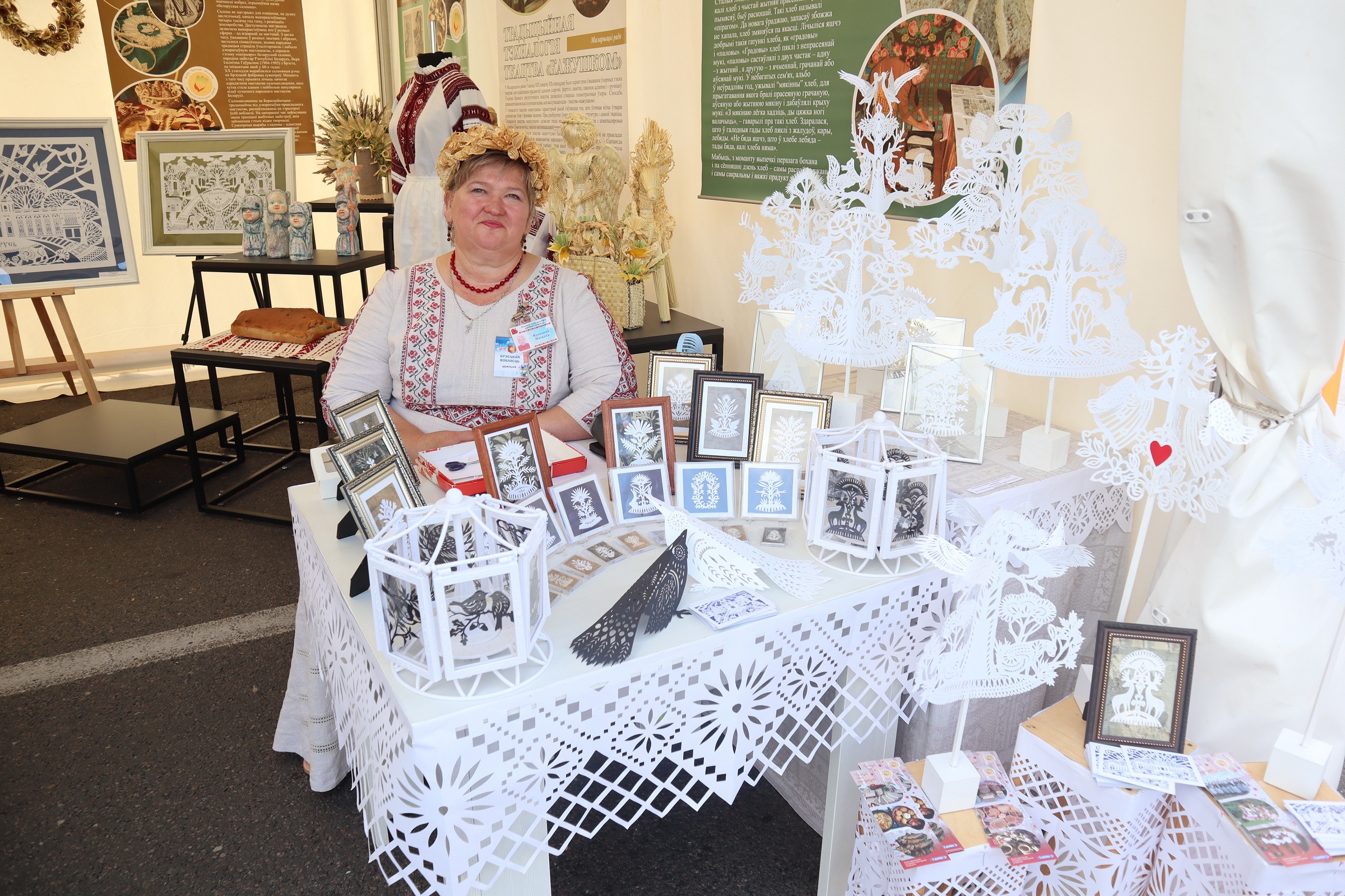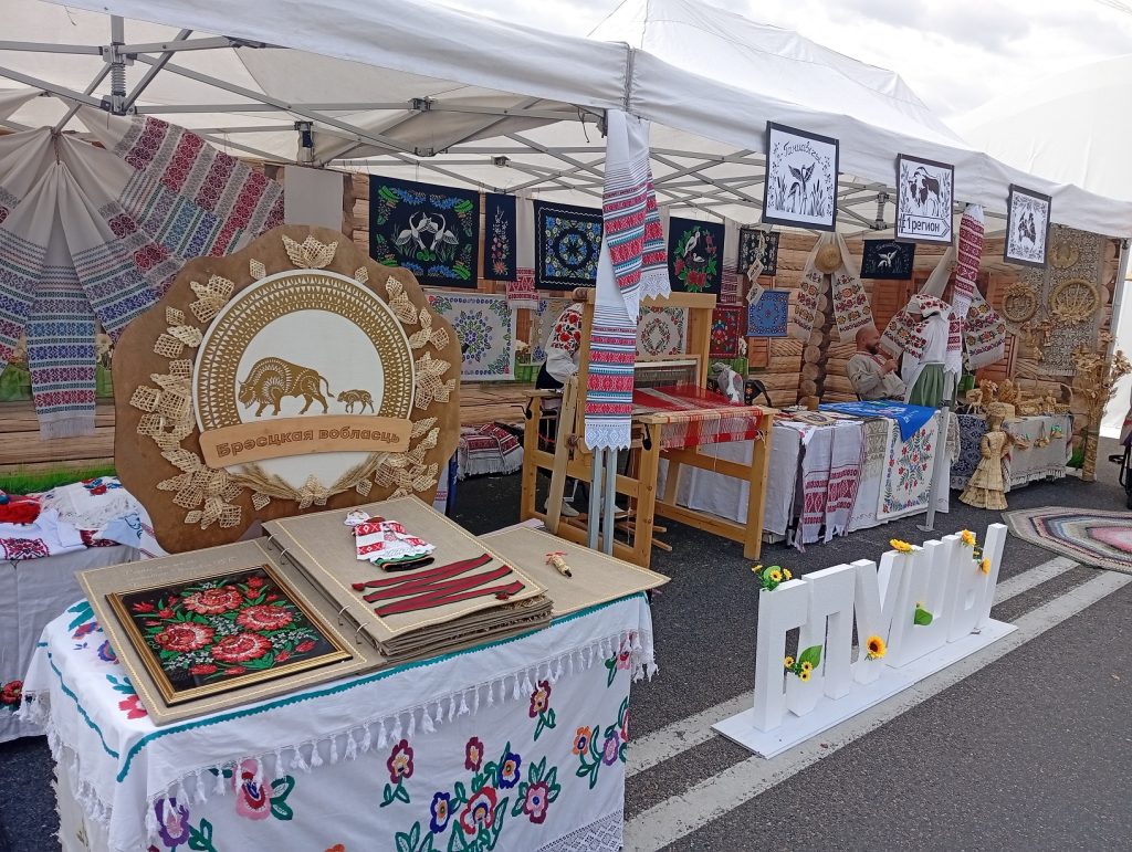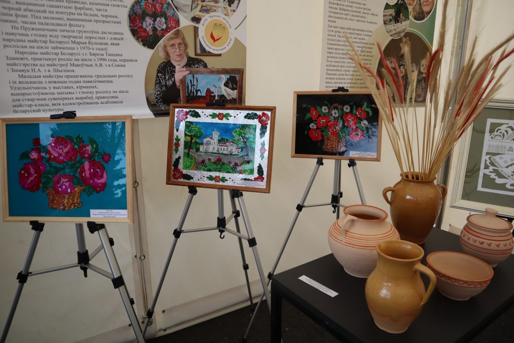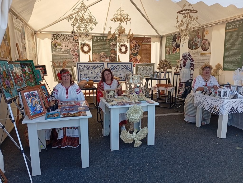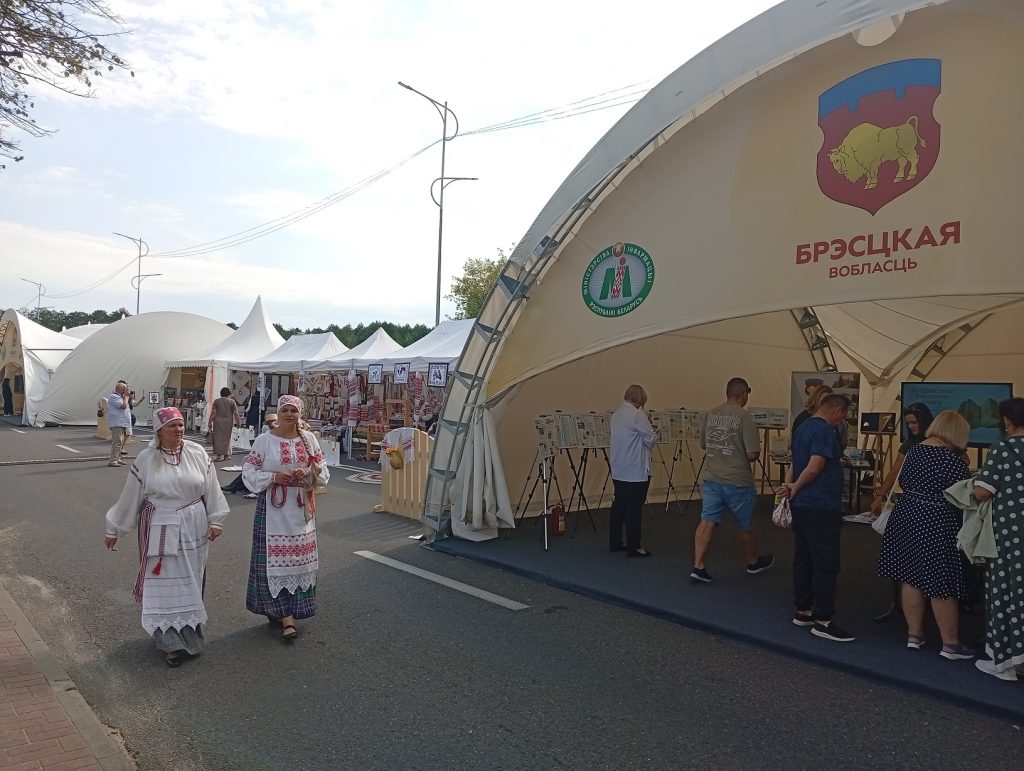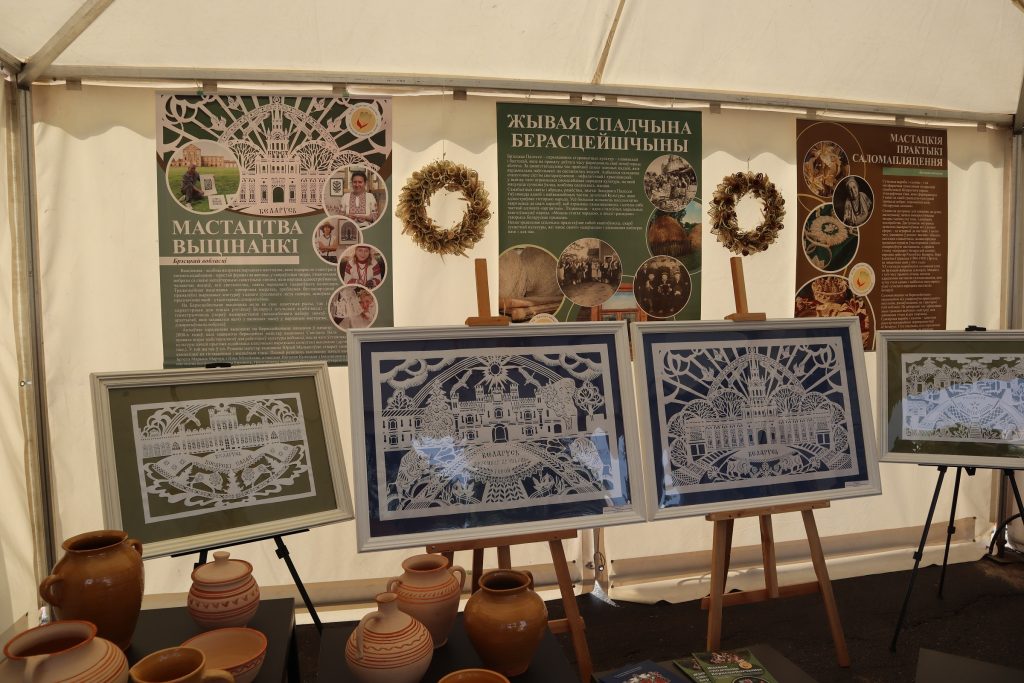 На площадке Брестской области, организованной ГУК «Брестский областной общественно-культурный центр» при поддержке управления культуры Брестского облисполкома, работали мастера народных художественных ремесел, демонстрируя традиционные виды декоративно-прикладного искусства, внесенные в Государственный список элементов нематериального историко-культурного наследия. Мастер-классы по вытинанке, соломоплетению и росписи на стекле проводили народные мастера Беларуси – Наталия Кулецкая, д. Дубитово Ивацевичского района, Ирина Коваль, г. Жабинка, Татьяна Зданевич, г. Береза.