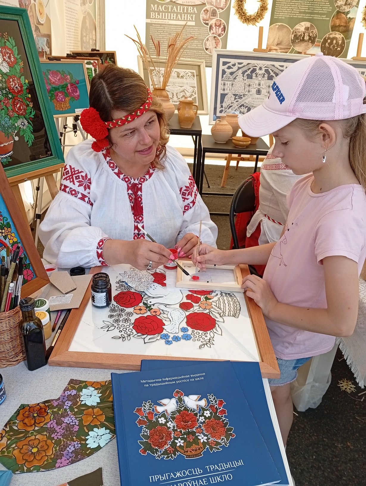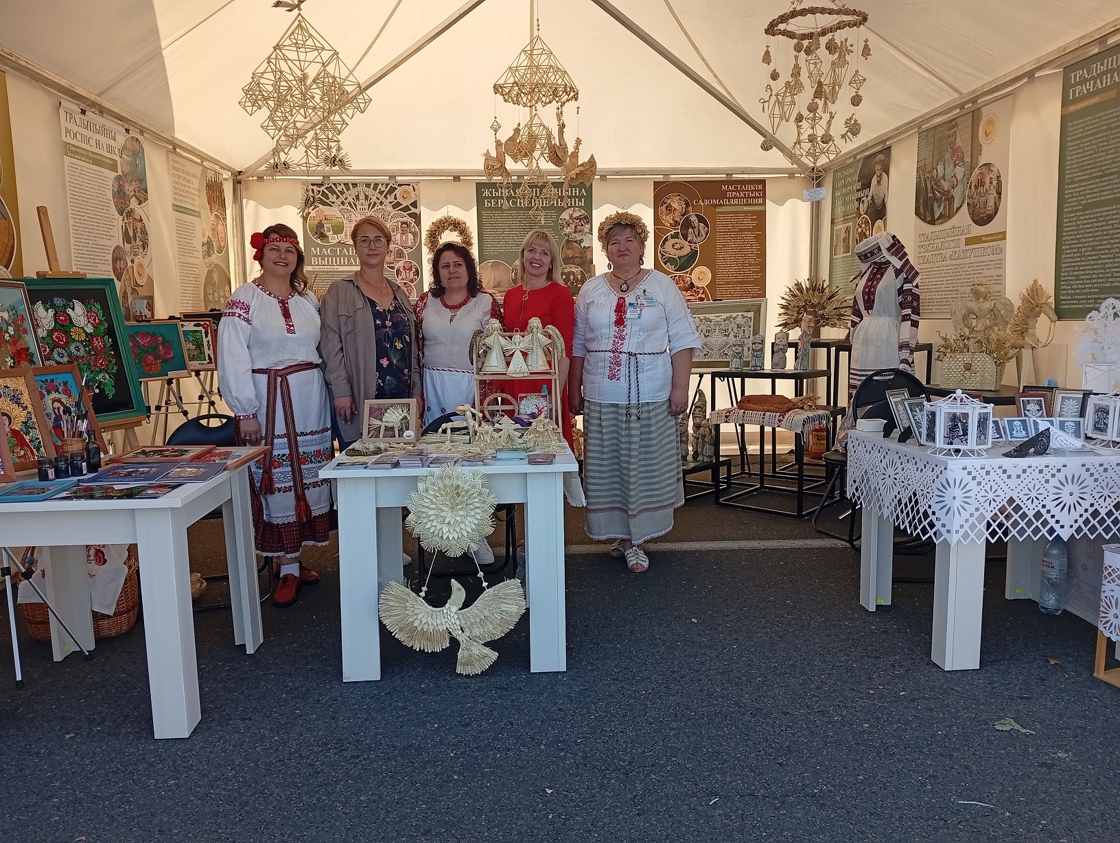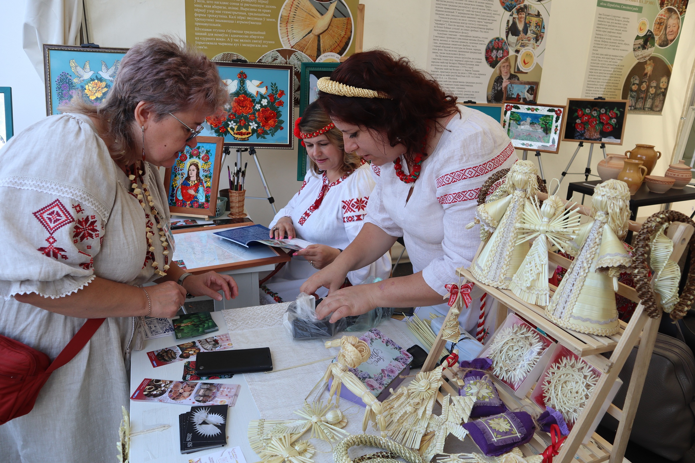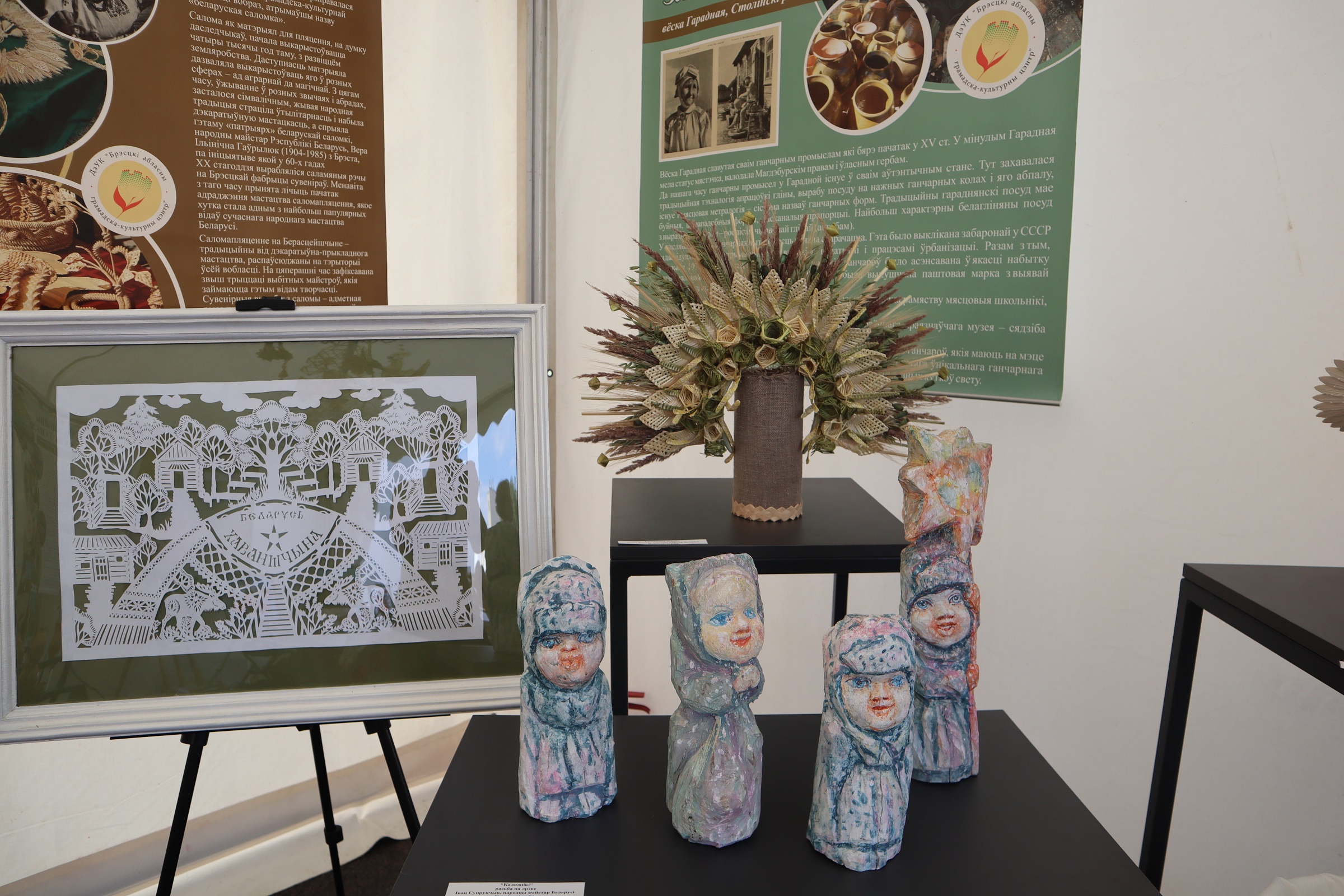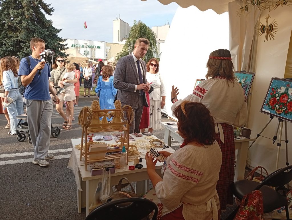 На площадке Брестской области, организованной ГУК «Брестский областной общественно-культурный центр» при поддержке управления культуры Брестского облисполкома, работали мастера народных художественных ремесел, демонстрируя традиционные виды декоративно-прикладного искусства, внесенные в Государственный список элементов нематериального историко-культурного наследия. Мастер-классы по вытинанке, соломоплетению и росписи на стекле проводили народные мастера Беларуси – Наталия Кулецкая, д. Дубитово Ивацевичского района, Ирина Коваль, г. Жабинка, Татьяна Зданевич, г. Береза.